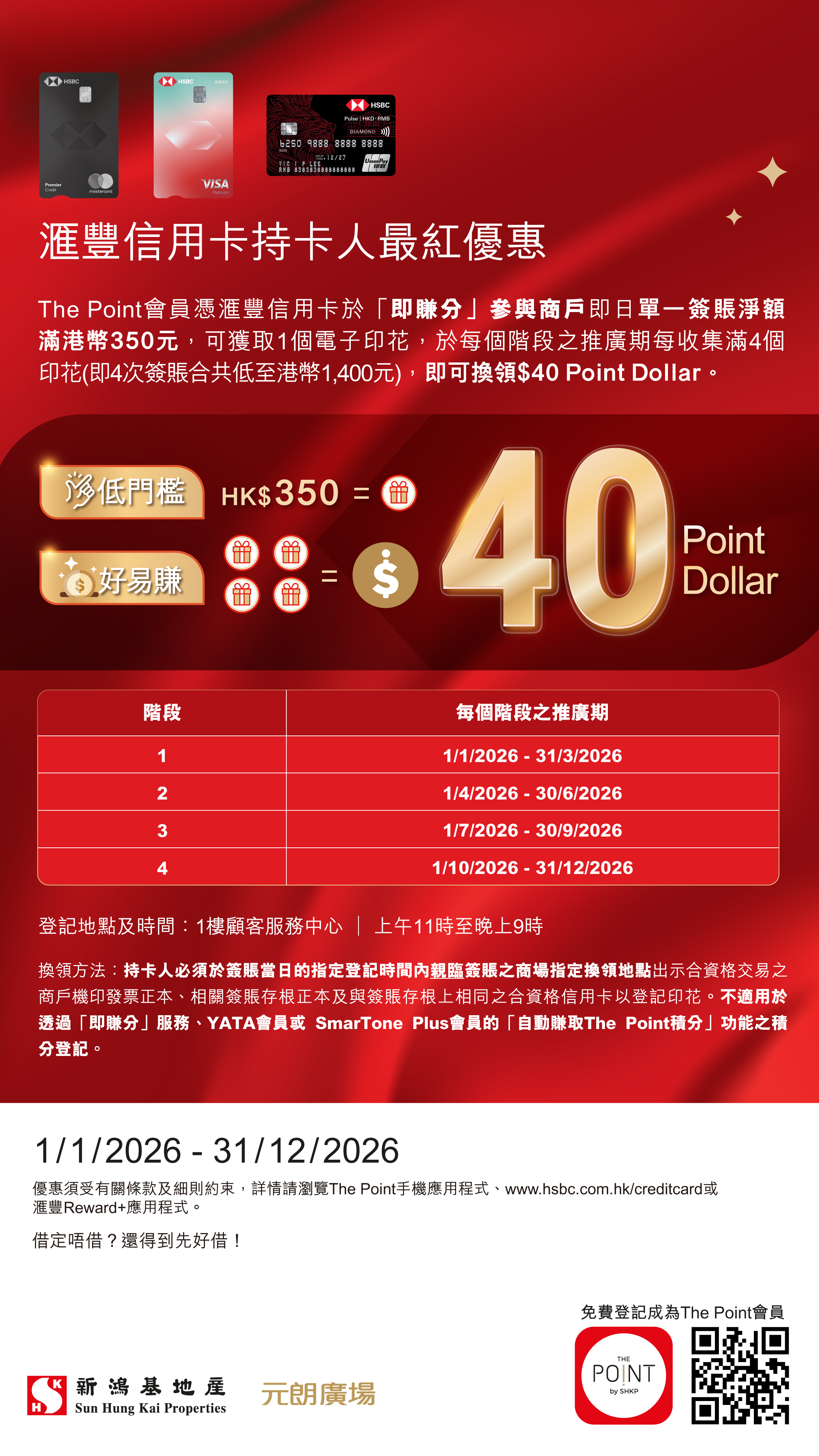 新地商场 x 汇丰信用卡最红全年优惠 2026